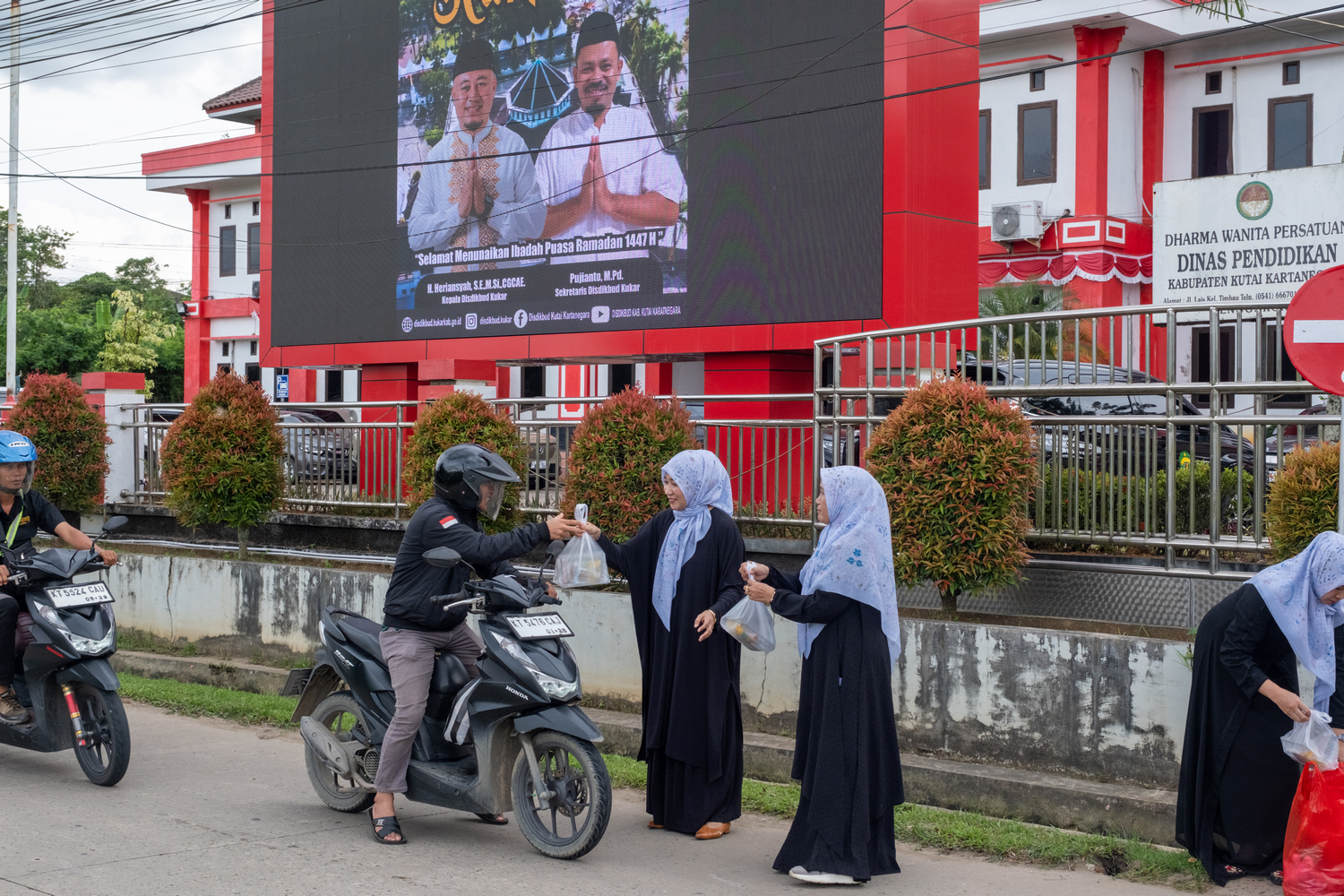 Di pimpin Ketua DWP Disdikbud Kukar Hj. Aji Emelda Firdina, SE para ibu sudah berkumpul untuk menyiapkan berbagai jenis makanan dan minuman sederhana untuk berbuka puasa yang dibungkus satu per satu untuk dibagikan kepada para pengguna jalan, tukang ojek, pedagang, serta masyarakat sekitar yang masih berada di perjalanan menjelang waktu berbuka.